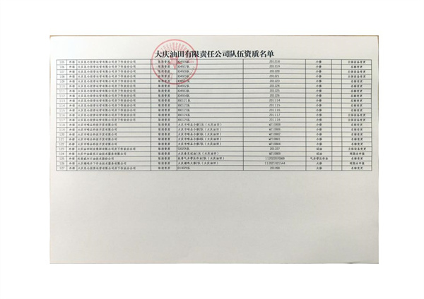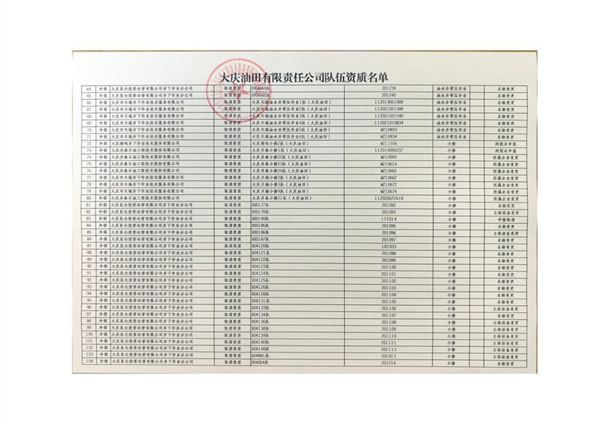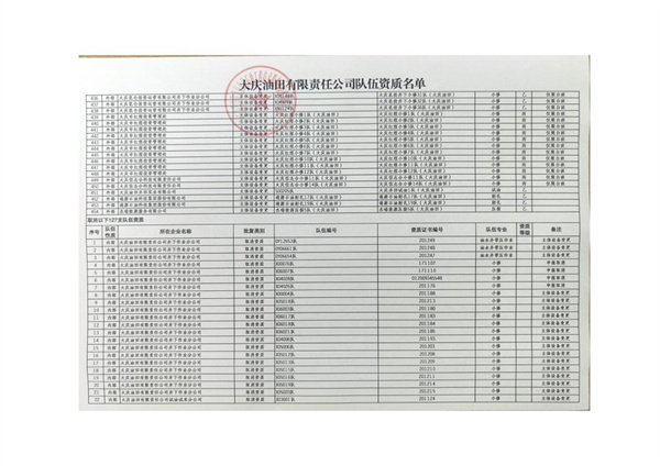 大慶東油15001隊(duì)(大慶油田)資質(zhì)證書(shū)